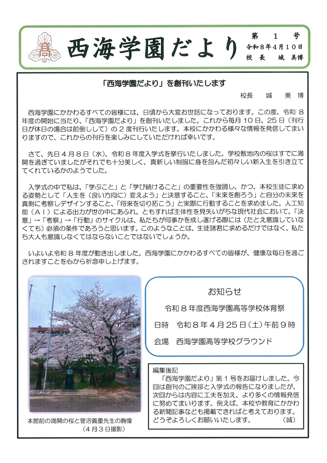 【第1号】西海学園だより